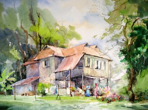 马来西亚画家彭钊风景水彩画作品 (14)
