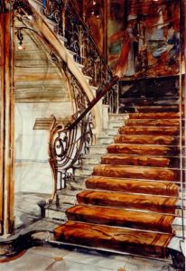 当我12岁时,一位老师帮我引导对建筑的热情。 我在学习物体的结构时发现:我已经找到了我一直在寻找的那种做名建筑师的感觉,我想我应该可以建造结构:那就是光可以去玩的地方,必定是可以形成一个梦幻般的世界。 不幸的是,我通过学习又很快发现:与建筑相关的许多问题:涉及法律、货币、投资者的抉择愚昧与否等等繁琐的问题。 我开始醒悟自己的事业,不是只做我心里梦想的那种艺术家。后来我又明白,只要有画就会提供相同的机会来创造自己的世界——-我的光,来分享我所挚爱的建筑。