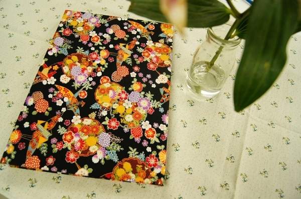 2、灰卡纸的大小其实应该裁掉一些,边缘比对折的水彩纸大5mm就够了(我忘记裁,直接包布了,凑合看吧)╭(╯^╰)╮